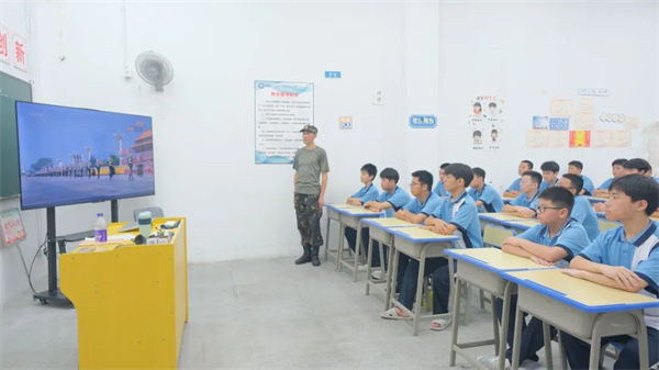 校團委副書記劉超老師以退伍軍人身份,為新生帶來了一堂生動的國防教育課。“抗戰(zhàn)精神從未過時,它早已融入我們每個人的責任與擔當之中?!眲⒗蠋熃Y合自身軍旅經歷,通過部隊訓練、執(zhí)行任務等真實故事,將“不畏強暴、血戰(zhàn)到底”的抗戰(zhàn)精神與當代青年的技能成才使命相銜接。