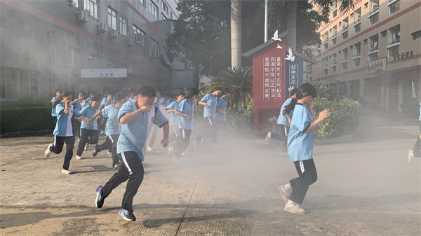 下午3時(shí),消防警報(bào)劃破長(zhǎng)空,橙色煙霧模擬火場(chǎng)環(huán)境迅速?gòu)浡堑?。在軍?xùn)教官和學(xué)工處老師的聯(lián)合組織下,同學(xué)們迅速用濕毛巾捂住口鼻,低姿彎腰沿墻前行,按照預(yù)定疏散路線快速向開闊地帶轉(zhuǎn)移。整個(gè)過(guò)程中,同學(xué)們沉著冷靜、動(dòng)作規(guī)范,快速有序疏散,安全抵達(dá)集結(jié)區(qū)域,展現(xiàn)出良好的紀(jì)律意識(shí)和協(xié)作能力。