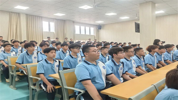 校團委副書記劉超老師以退伍軍人身份,為新生帶來了一堂生動的國防教育課?!翱箲?zhàn)精神從未過時,它早已融入我們每個人的責(zé)任與擔(dān)當(dāng)之中。”劉老師結(jié)合自身軍旅經(jīng)歷,通過部隊訓(xùn)練、執(zhí)行任務(wù)等真實故事,將“不畏強暴、血戰(zhàn)到底”的抗戰(zhàn)精神與當(dāng)代青年的技能成才使命相銜接。