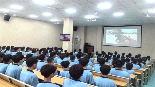 校團委副書記劉超老師以退伍軍人身份,為新生帶來了一堂生動的國防教育課?!翱箲?zhàn)精神從未過時,它早已融入我們每個人的責(zé)任與擔(dān)當(dāng)之中。”劉老師結(jié)合自身軍旅經(jīng)歷,通過部隊訓(xùn)練、執(zhí)行任務(wù)等真實故事,將“不畏強暴、血戰(zhàn)到底”的抗戰(zhàn)精神與當(dāng)代青年的技能成才使命相銜接。
